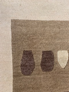 Original Nepal Design-Teppich. Wahrhaftig ein Einzelstück, ein Unikat. Dieses Dekor und diese Farbgebund gibt es wirklich nur einmal auf der Welt. Teppiche aus unserer Ausstellung wurden zur Ansicht und Festlegung einer Jahreskollektion für einen großen deutschen Teppichimporteur geknüpft. Die sind jedoch nicht in eine Massenproduktion reingeflossen, weil der Großhändler kurze Zeit darauf insolvent war. Die Teppiche bestehen aus sehr strapazierfähigen, reiner Hochgebirgswolle (Neuseeland). Wunderschöne, ausgefallene Designs. Der UVP für diesen Teppich liegt bei 1177,00€. Das Maß ist ca. 140×200 cm. Ohne Fransen.