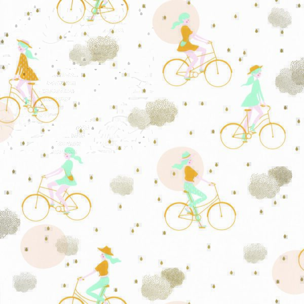 Die Mädchentapete LUCY IN THE SKY GPR100846226 ist eine föhliche Tapete, die jedes Mädchenzimmer verzaubert. Ein Mädchen fliegt mit ihrem Fahrrad hinauf zum Himmel, ein Traum! Auf einem weißen Hintergrund sind die Mädchen und Fahrräder in Mint und Ocker Töne abgebildet, Regentropfen und Wölkchen in Gold lockern das Bild auf. Die LUCY IN THE SKY Tapete lässt Mädchenherzen höher schlagen!