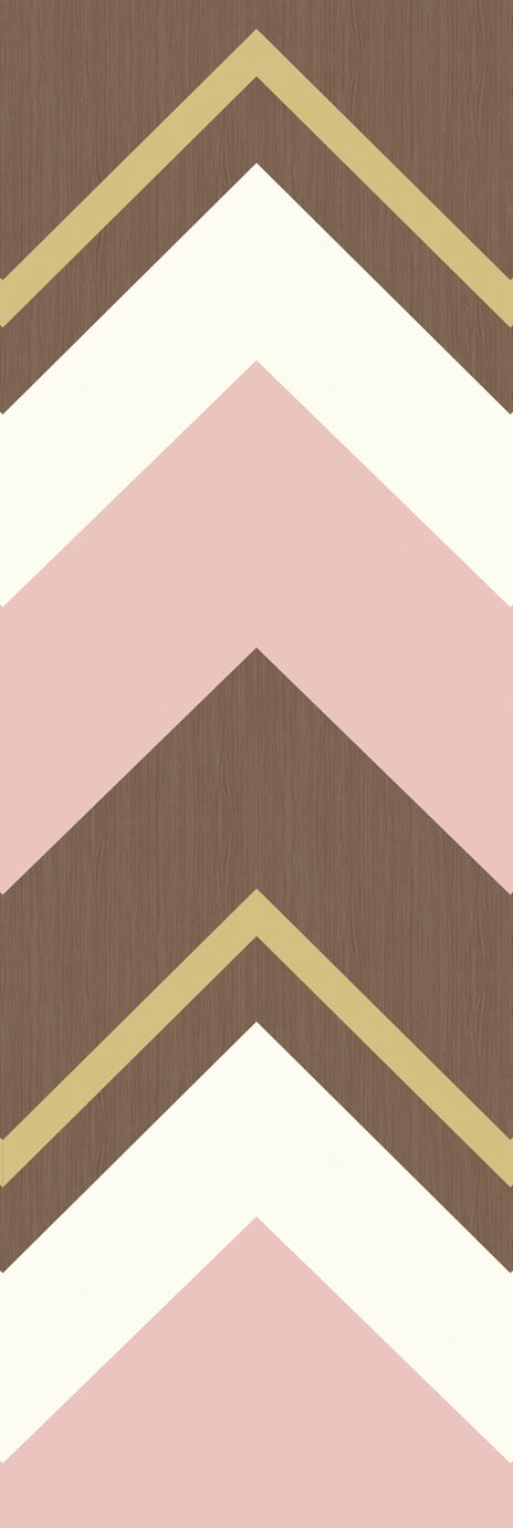 Wunderschönes Wandbild mit ausgefallenem Zickzack-Muster in Braun, Rosa, Beige und Weiß.
