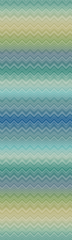 Für Individualität, Lebensfreude und Strahlkraft. Wie bei Zig Zag Sfumato M1B20090. Einem zweiteiligen Panel in den eindrucksvollen Maßen 2,00m x 3,30m. Modern und extravagant macht es Ihnen diese Mustertapete in einer sanften Palette aus sanften Lindgrün- und Blautönen, verblendet mit dem typischen MISSONI Muster möglich, auch einzelne Akzente zu setzen. Lebendig und farbenfroh, lässt Zig Zag Sfumato auch Ihr Zuhause regelrecht erstrahlen. Die matte Leinenoptik und eingängige Oberflächenstruktur macht es mühelos möglich, auch Unitapeten der Kollektion, wie beispielsweise Plain Mini Chevron, zu kombinieren. Werden Sie zu Ihrem eigenen Inneneinrichter. Gestalten Sie mit diesem Panel Ihre Räume auffällig und individuell. Bunt, frech und vor allem, lebendig. Setzen Sie Statements, die man nicht mehr vergisst.